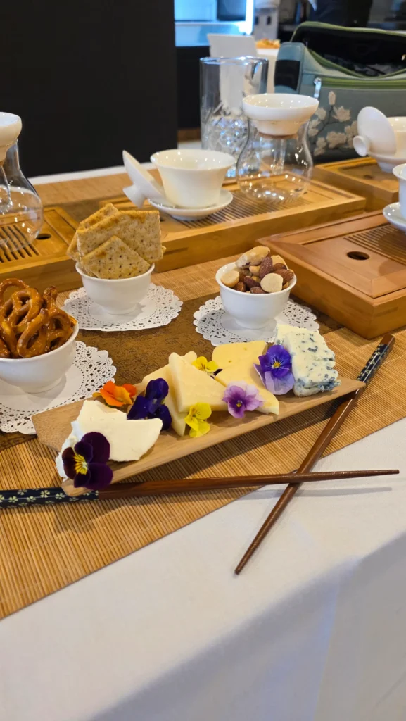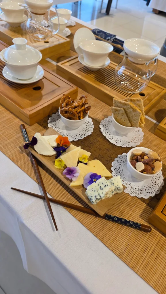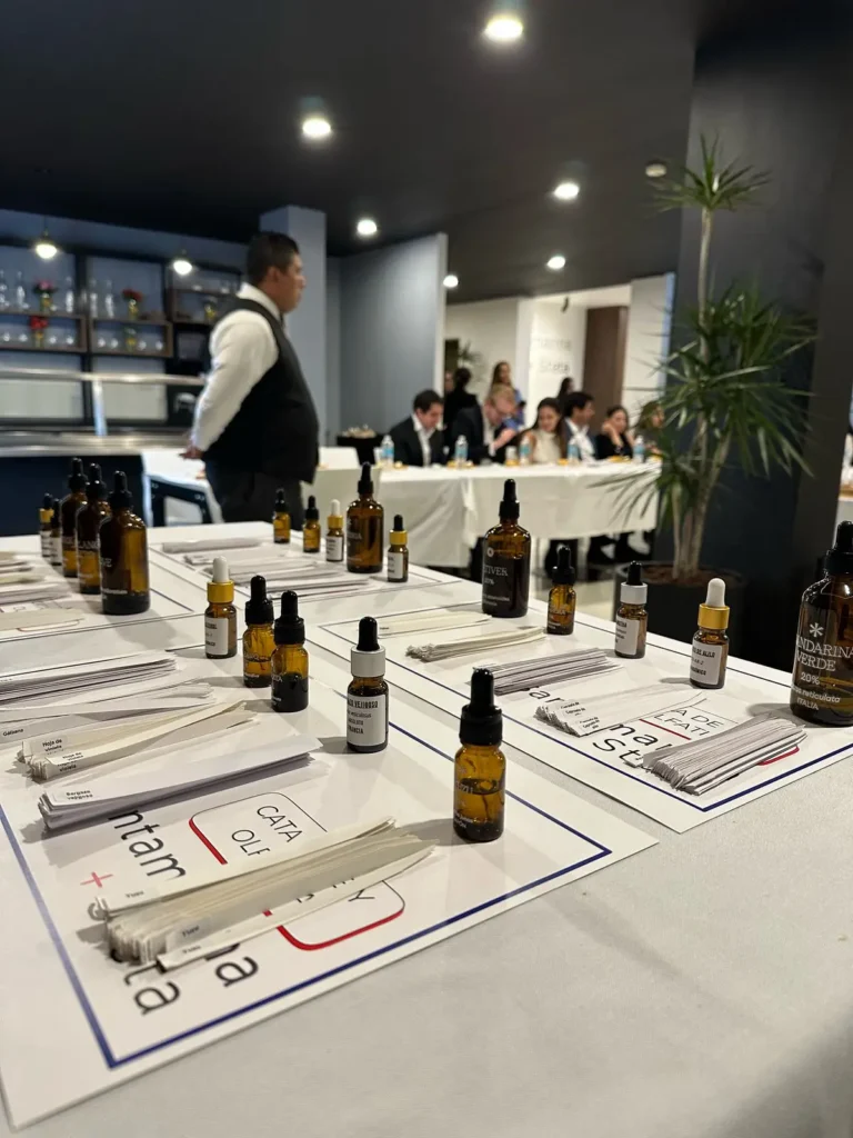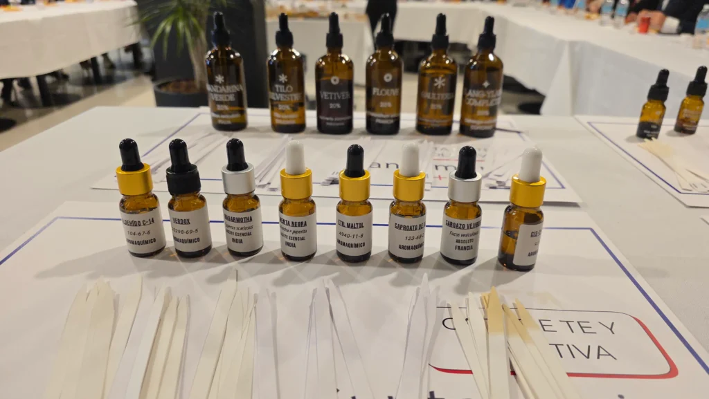 La sesión fue conducida por una sommelier de té y un perfumista natural, quienes acompañaron a los asistentes en un recorrido de cuatro tiempos, cada uno dedicado a un estilo de té: blanco, verde, negro y pu-erh. Cada infusión fue acompañada por cinco aromáticos naturales y aromaquímicos, seleccionados con precisión para resaltar, expandir o contrastar sus notas predominantes.