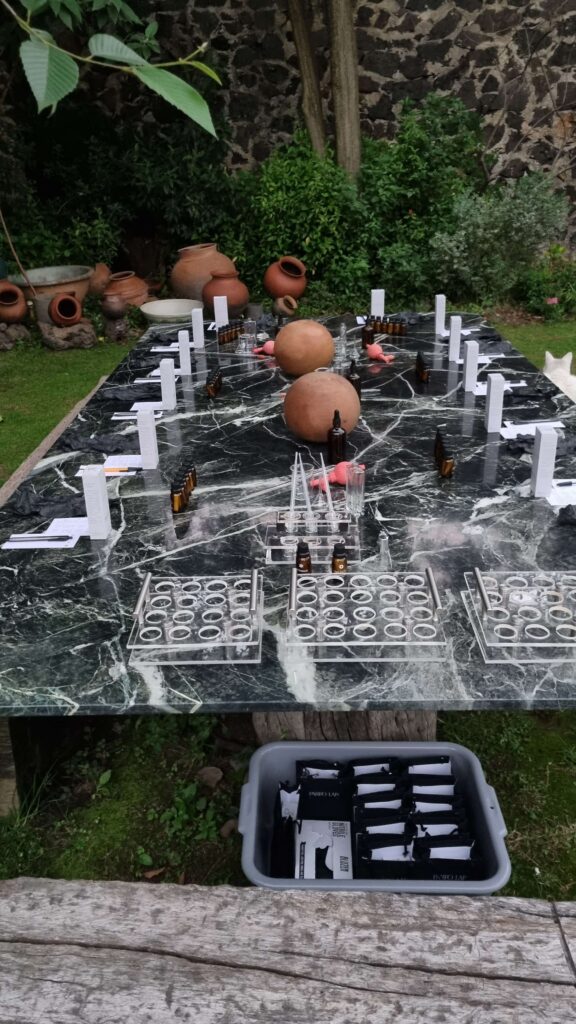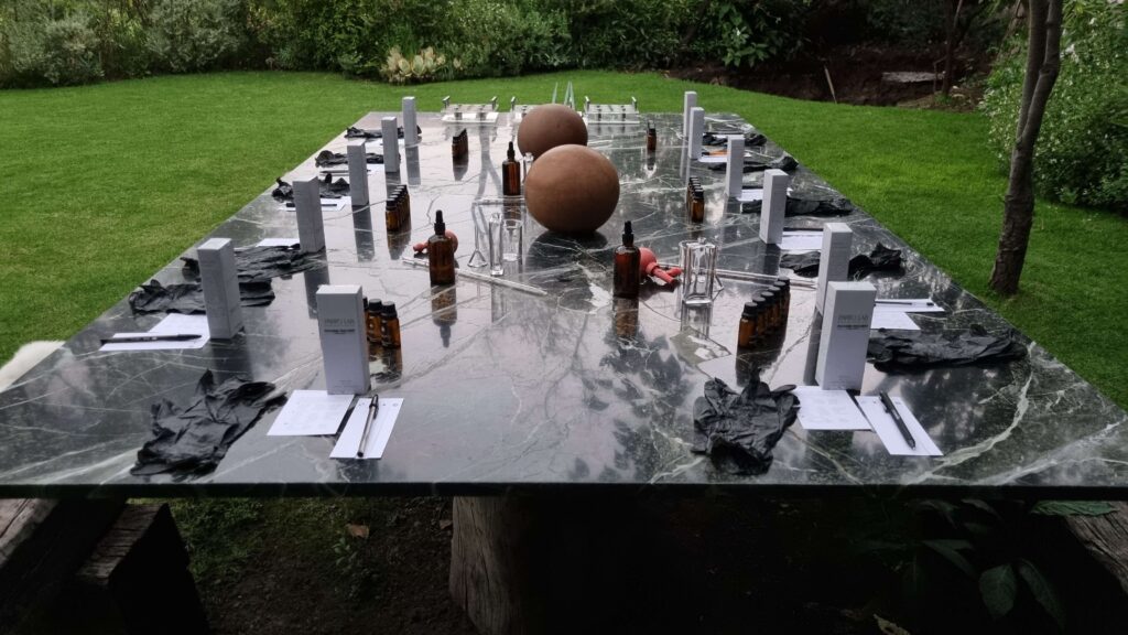 La jornada comenzó con una masterclass de perfumería natural, donde las asistentes aprendieron los fundamentos de la creación de fragancias, exploraron más de 30 materias primas nobles y descubrieron cómo se estructura una fórmula a través de notas, contrastes y emociones.